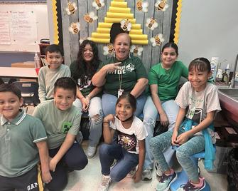 Second grade teacher, Ms. Trujillo, is part of an opportunity called the Leaders Readers Fellowship. As part of the program, she receives books for her students and commits to doing booked-based activities and service projects.